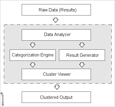 Our Clustering Engine consists of 4 core elements: - Data Analyzer - Categorization Engine - Result Generator - Cluster Viewer